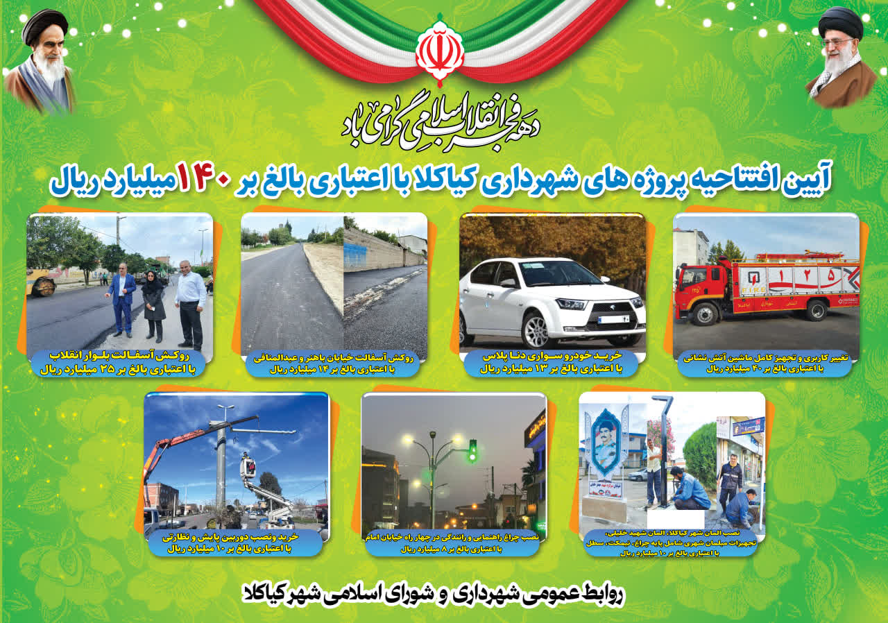 آیین افتتاحیه پروژه های شهرداری کیاکلا به مناسبت دهه فجر با اعتباری بالغ بر ۱۴۰میلیارد ریال 1404/11/20 آیین افتتاحیه پروژه های شهرداری کیاکلا به مناسبت دهه فجر با اعتباری بالغ بر ۱۴۰میلیارد ریال دسته بندی اخبار مدیریت پسماند (0) فرهنگی،اجتماعی و ورزشی (1) شهرداری منطقه یک (0) شهرداری منطقه 2 (0) شهرداری (118) سیما، منظر و فضای سبز شهری (3) ساماندهی مشاغل و فرآورده های کشاورزی (0) سازمان مدیریت حمل و نقل بار و مسافر (0) سازمان عمران و باز آفرینی فضای شهری (0) آرامستان (0) آتش نشانی و خدمات ایمنی (0)