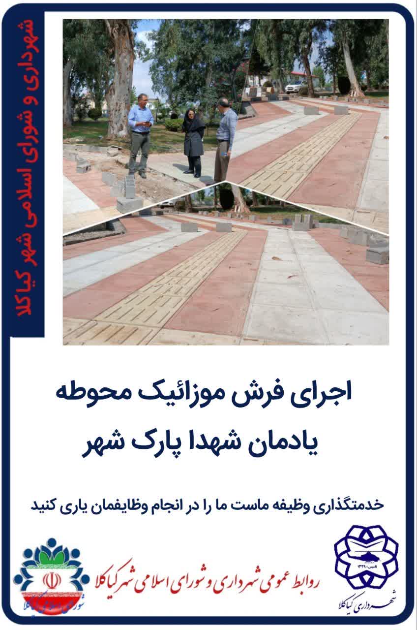 اجرای فرش موزائیک محوطه یادمان شهدا پارک شهر