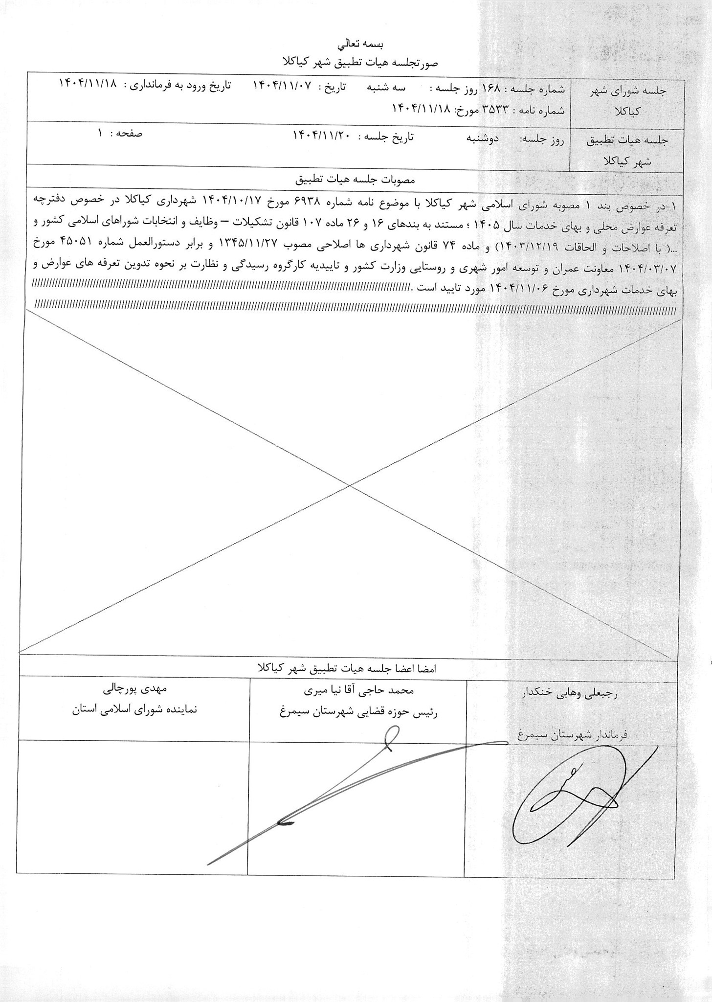 دفترچه تعرفه عوارض و بهای خدمات شهر کیاکلا - 1405