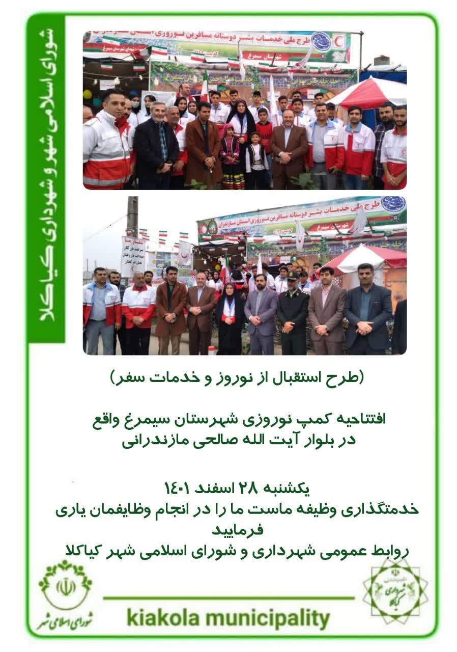 طرح استقبال از نوروز و خدمات سفر - افتتاحیه کمپ نوروزی شهرستان سیمرغ واقع در بلوار آیت الله صالحی مازندرانی