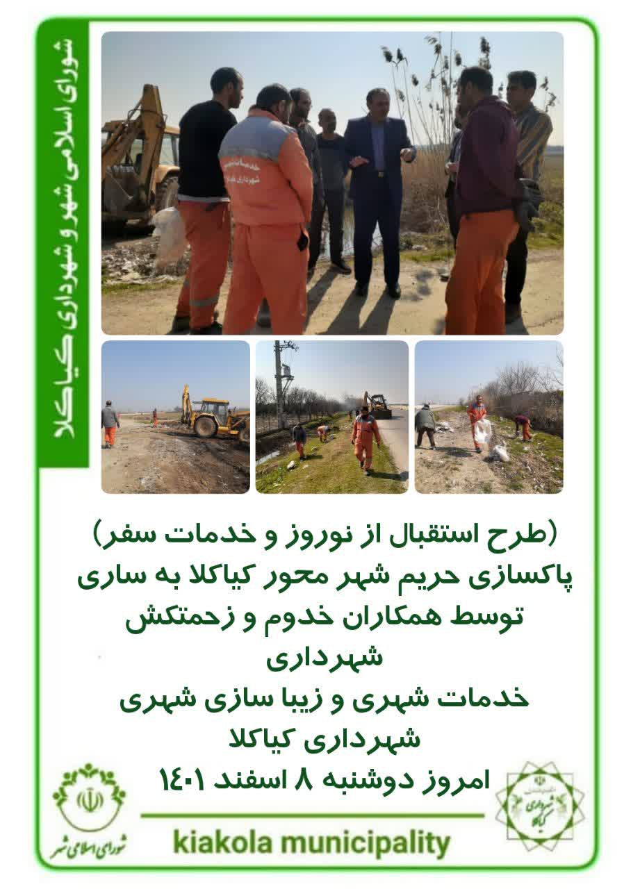 طرح استقبال از نوروز و خدمات سفر- پاکسازی حریم شهر محور کیاکلا به ساری توسط همکاران خدوم و زحمتکش شهرداری خدمات شهری و زیبا سازی شهری شهرداری کیاکلا