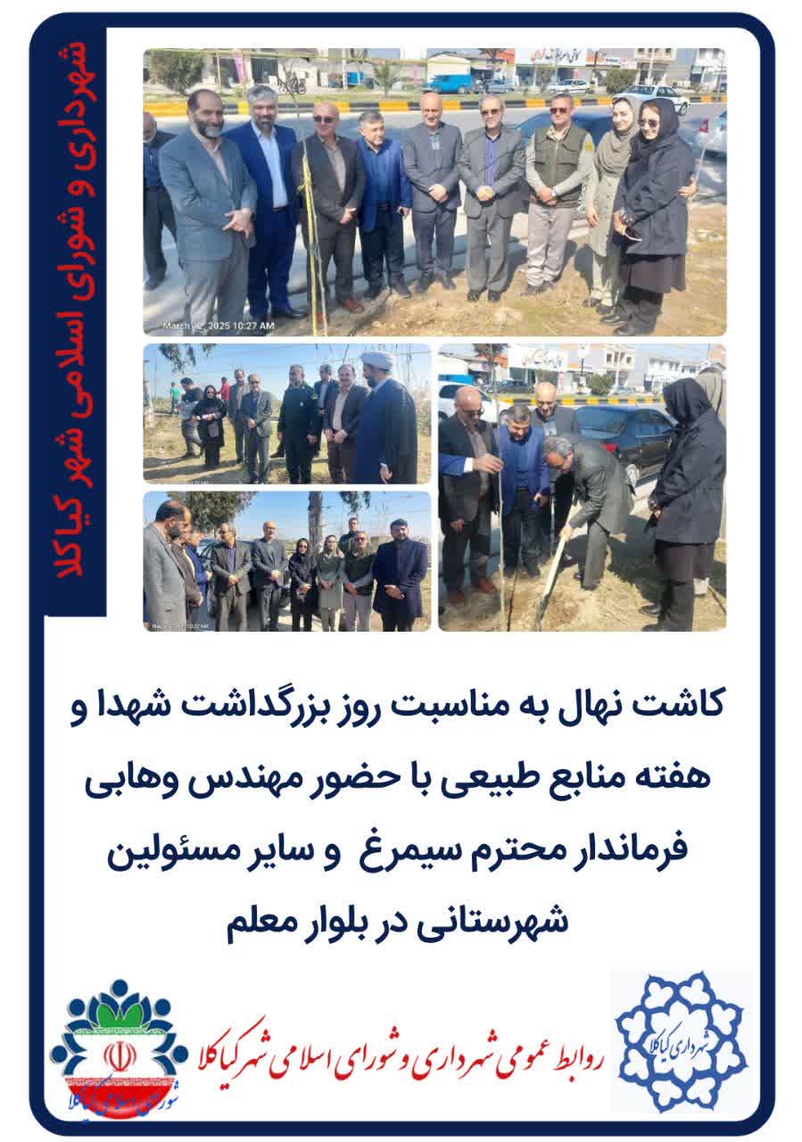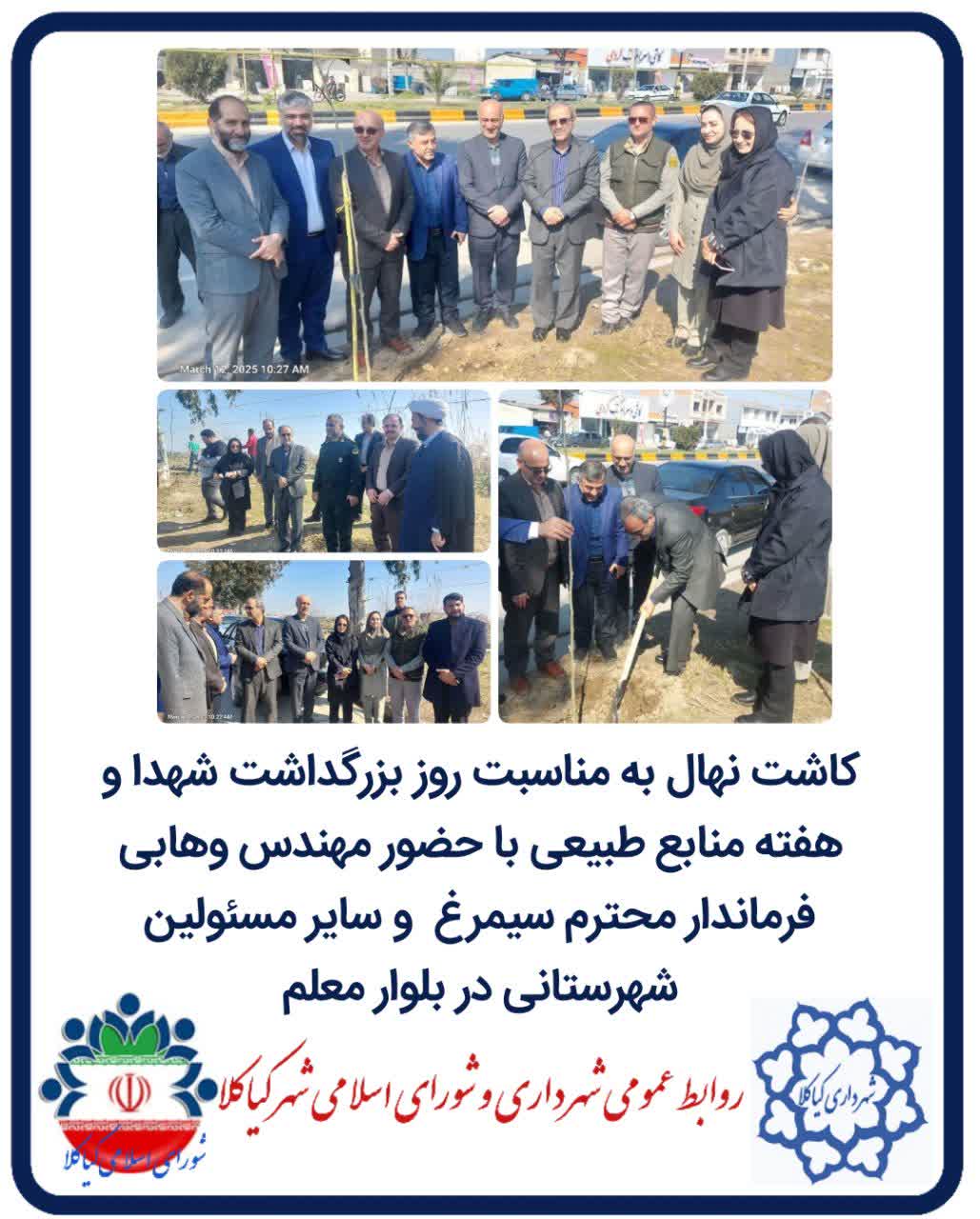 کاشت نهال به مناسبت روز بزرگداشت شهدا و هفته منابع طبیعی با حضور مهندس وهابی فرماندار محترم سیمرغ و سایر مسئولین شهرستانی در بلوار معلم